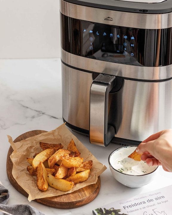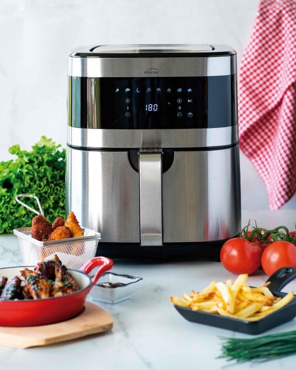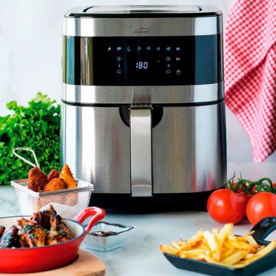 Fryer sem óleo Ecofry, para fritar, assar, assar e aquecer com pouco óleo, para uma cozinha caseira e saudável, da Lacor.