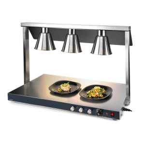 Placa de aquecimento elétrico de aço inoxidável mais de 3 lâmpadas de halogéneo na parte superior para obter uma temperatura homogénea.