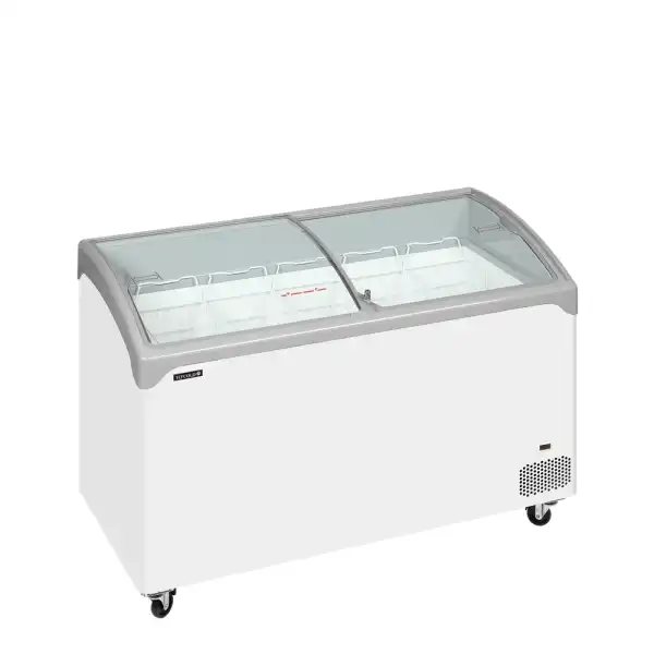 A gama premium de congeladores de gelados NIC tem um excelente design com cantos curvos, arestas arredondadas e tampas de vidro deslizantes curvas. Estes congeladores são muito estáveis e de construção sólida, mas ao mesmo tempo incorporam rodízios para um fácil reposicionamento na loja. São ideais para expor alimentos congelados, incluindo gelados e picolés. Está disponível um conjunto completo de cestos.