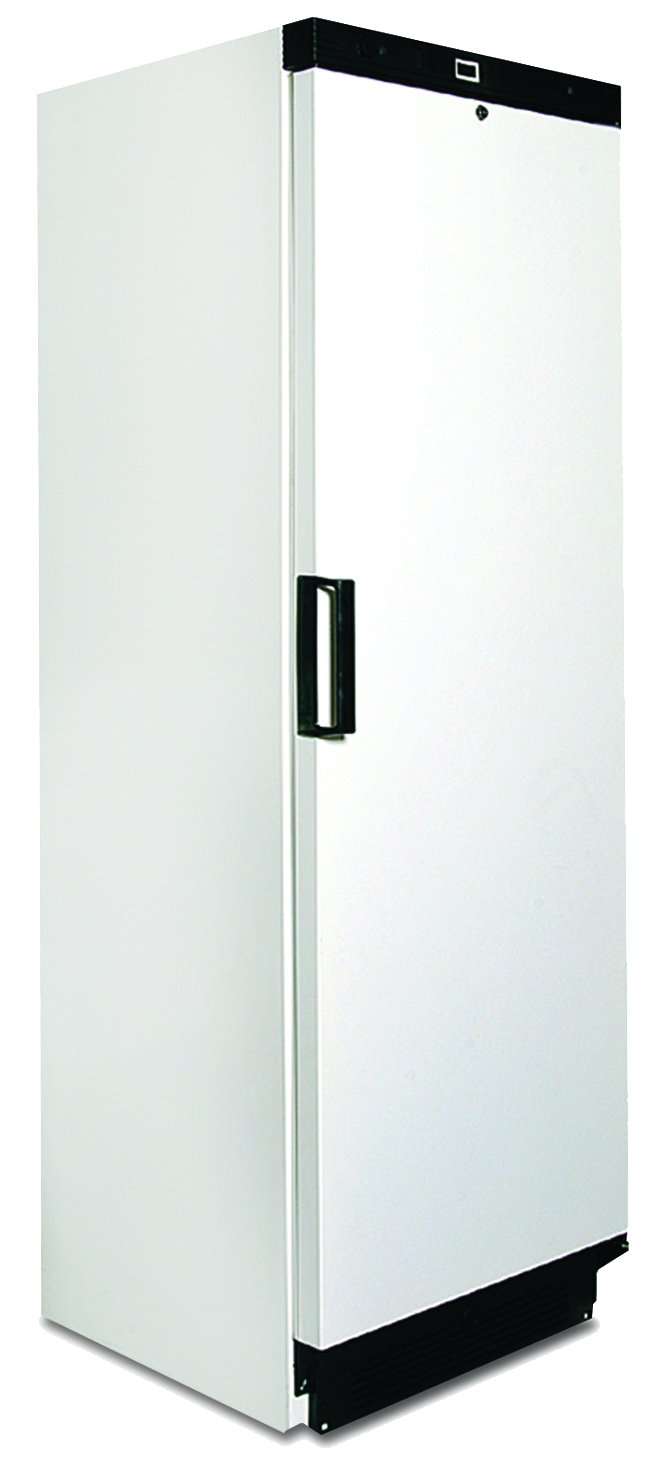 Armário vertical com porta opaca. Sem display. Descongelação manual. Capacidade: 300 litros. Refrigeração estática com ventilador de apoio.
