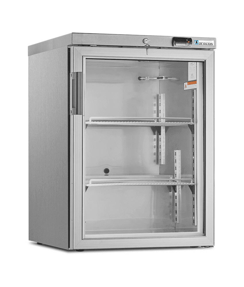 Mini armário frigorífico de conservação de congelados estático e com porta de vidro.