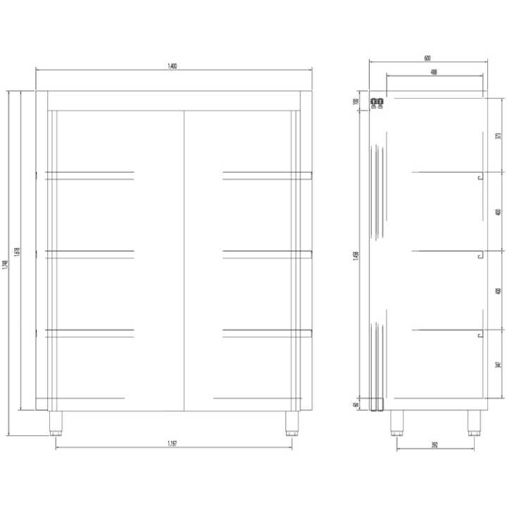 Equipados com prateleiras de aço inoxidável reguláveis em altura.