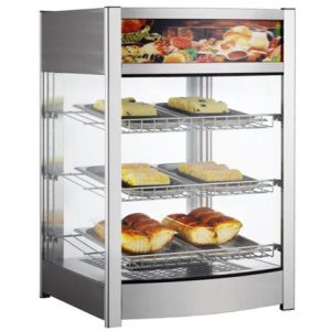 Recipiente de água para humidificação do ar dentro armário expositor aquecido para balcão.