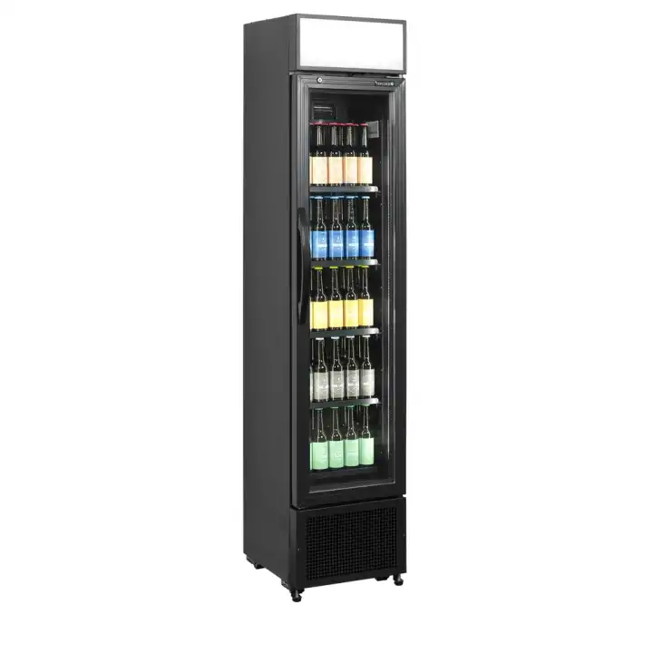A gama FSC Slim oferece uma excelente qualidade de construção a um preço competitivo. O modelo Slim possui uma porta de vidro e está disponível em preto ou branco. Obtém uma excelente apresentação do produto, combinada com um potente sistema de refrigeração, enquanto as prateleiras ajustáveis acrescentam flexibilidade. Este expositor refrigerado é ideal para a promoção da marca e, graças à cobertura iluminada no topo, atrairá certamente a atenção dos clientes.