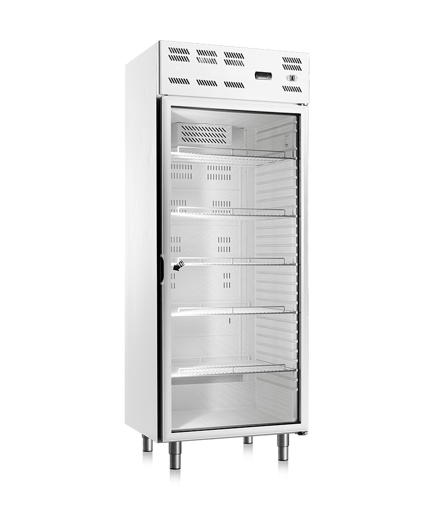 Armário frigorífico refrigerado com porta em vidro.