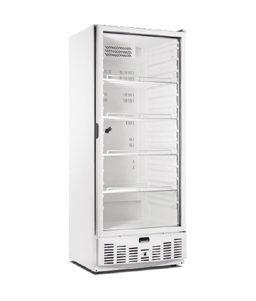 Armário frigorífico refrigerado com porta em vidro.