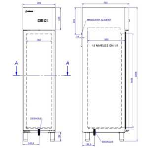 Capacidade para 18 prateleiras com espaçamento entre prateleiras de 70 mm