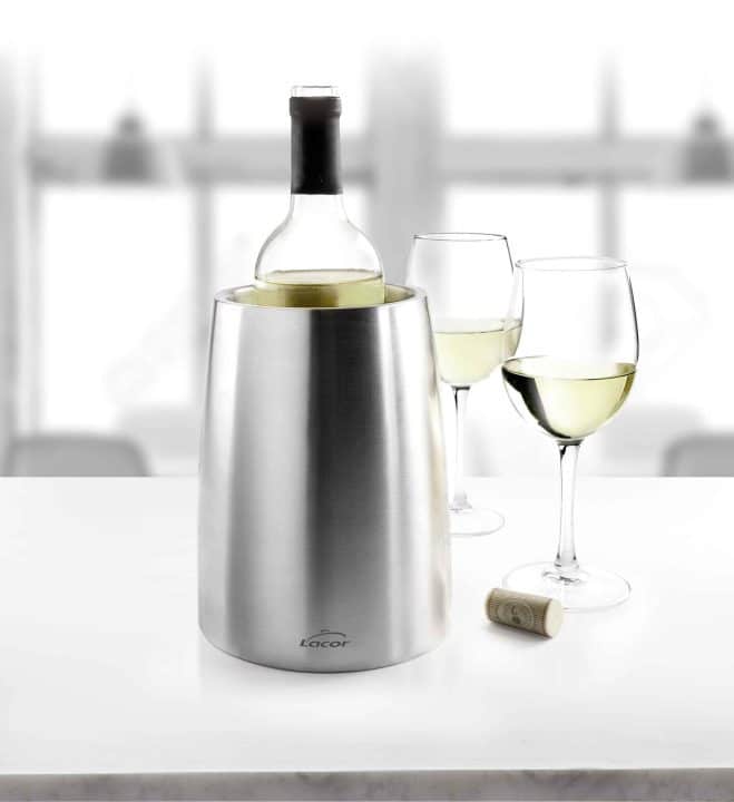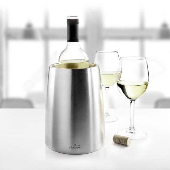 Enfriabotellas de aço inoxidável 18/10 acabamento mate com parede dupla isolação para manter melhor o frio sem necessidade de utilizar gelo.