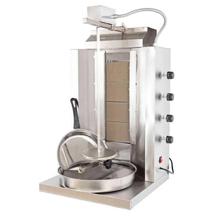 Assador kebab-gyros com 4 queimadores na horizontal.