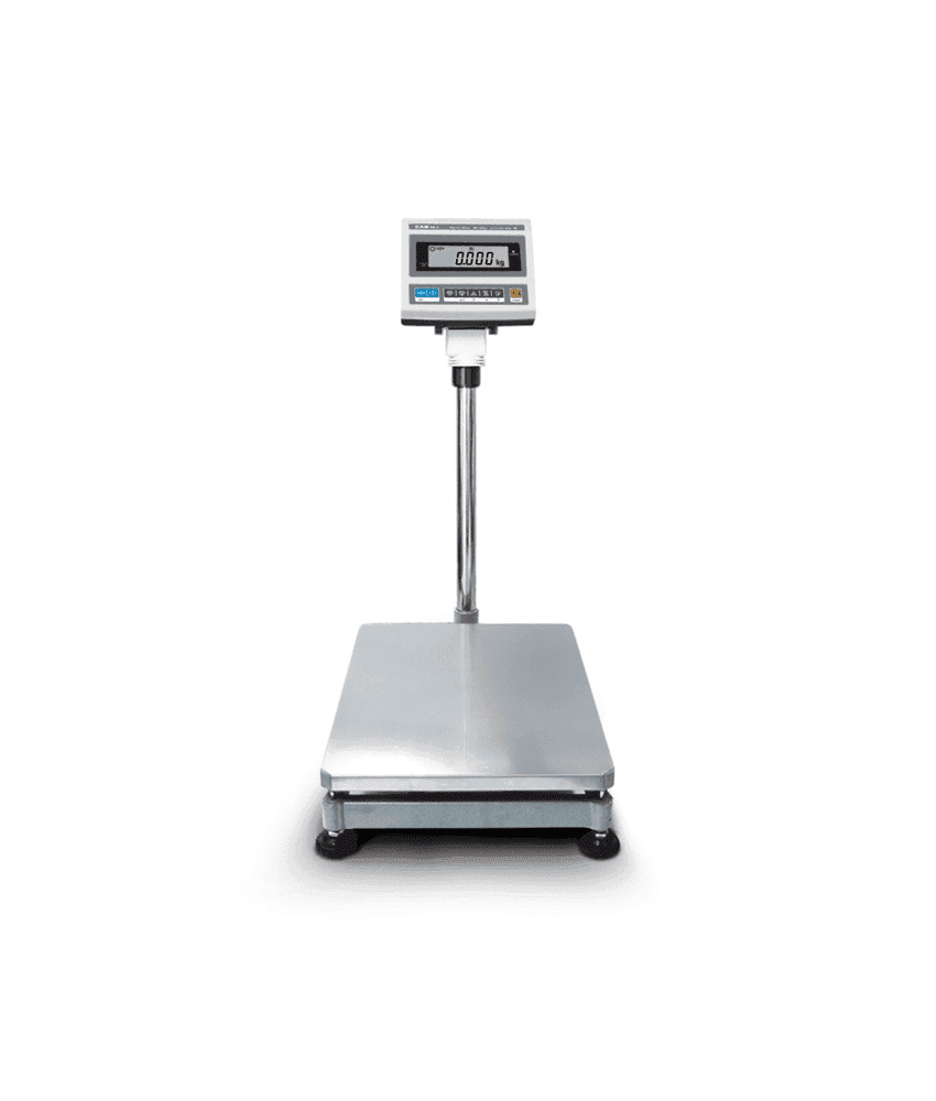 Balança industrial com capacidade pesagem até 150kg, plataforma com 460x570mm.