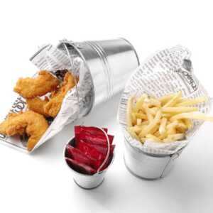 Forre os baldes com os nossos papéis antigordura quando os utilizar para servir alimentos.