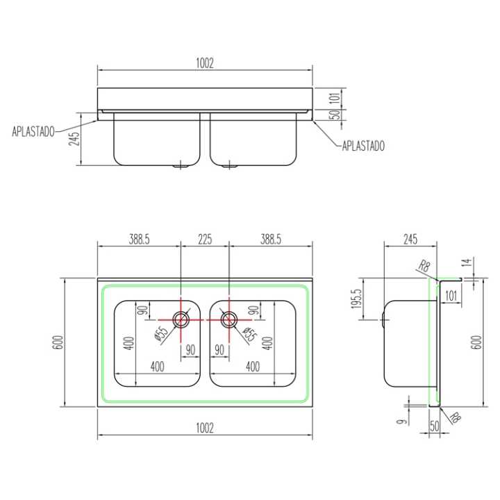 Encimera com profundidade de 700 mm com pias Bancada com lavatório 1000 x 6...
