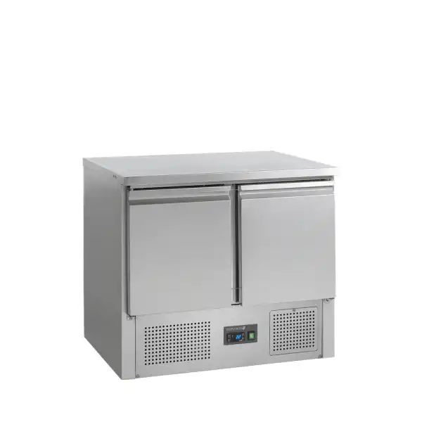 A mesa congeladora SA Saladette é fabricada em aço inoxidável SS304 e tem uma gama de temperaturas de -20 a -10 graus. Inclui dois armários com dimensões GN1/1, incluindo 2 prateleiras de grelha GN1/1. Perfeita para cozinhas profissionais.