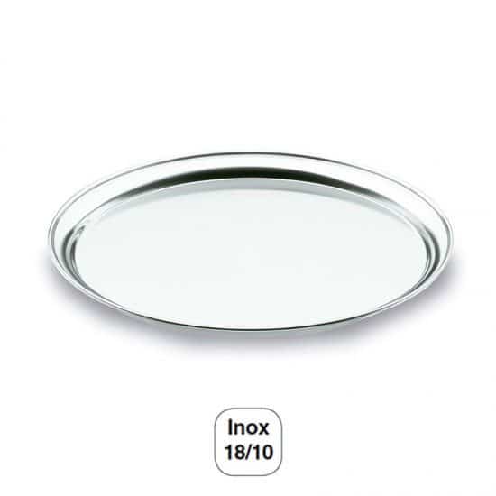Bandeja de mesa redonda fabricada em aço inoxidável 18/10, material liso, não poroso e muito higiênico, que oferece uma excelente resistência à corrosão.