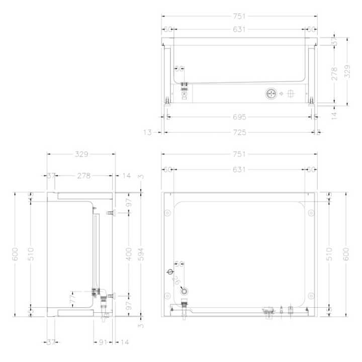 - No frontal, incorpora uma torneira para o esvaziamento da cuba.