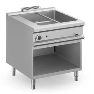 O tampo é fabricado em aço AISI 18/10 com 1 mm de espessura
