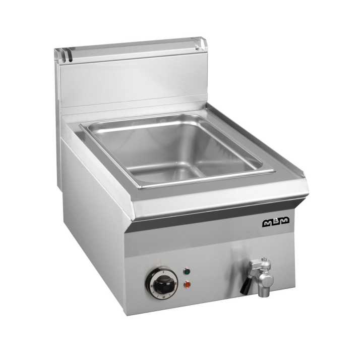 O Banho-Maria está disponível em meio módulo ou módulo completo, com acionamento elétrico, em versão de mesa