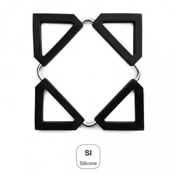 Base para tachos suspensa quadrado fabricado em silicone com estrutura metálica. Medida fechado: 12,5×12,5 cm Medida aberto: 16×16 cm
