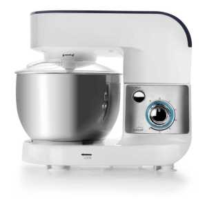 Batedeira amassadeira modelo Gourmet com uma tigela de aço inoxidável, 3 cabeçotes de mistura intercambiáveis, 600 w de potência e 6 velocidades.