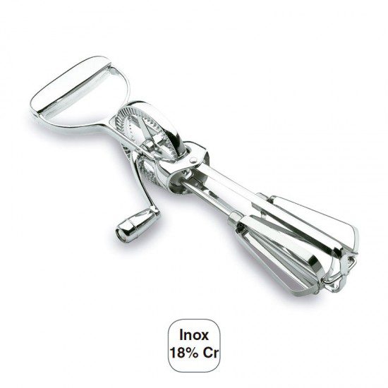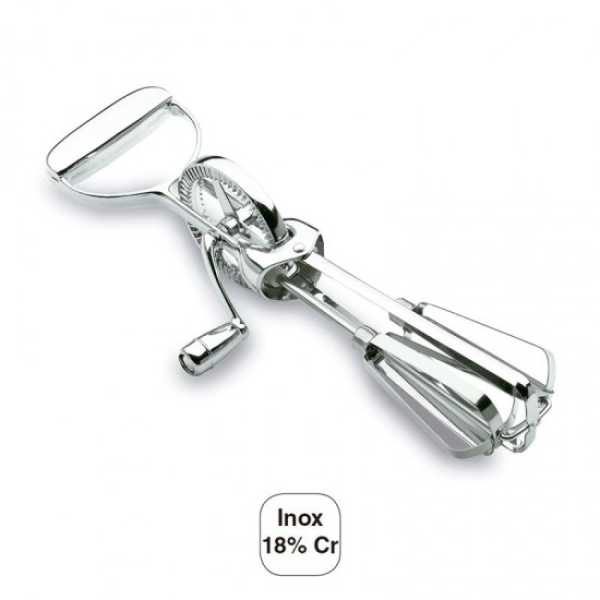 Batedor de manivela ideal para operações de complemento de fabrico de pastelaria fabricado em aço inoxidável, 18% de Cromo de alta qualidade e resistência à corrosão.