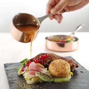 Feito em cobre/alumínio/aço inoxidável em 3 camadas com espessura de 2,5 mm.