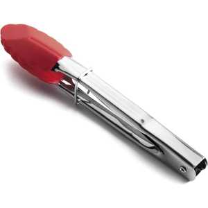 Caixa display de 25 pinças de 18 cm de comprimento em silicone de diferentes cores e cabo de aço inoxidável. Ideal para cozinhar ou para bolos.