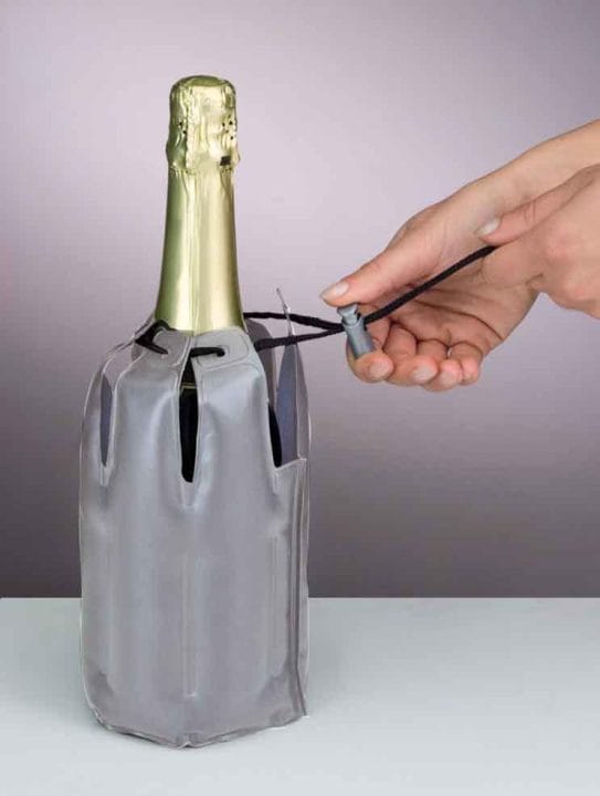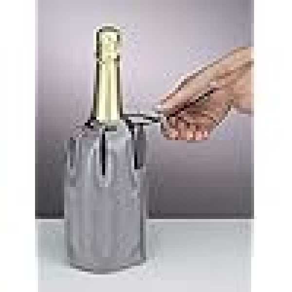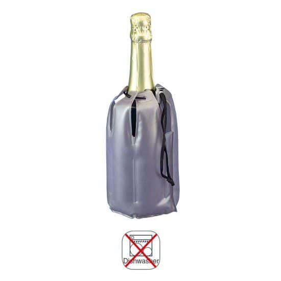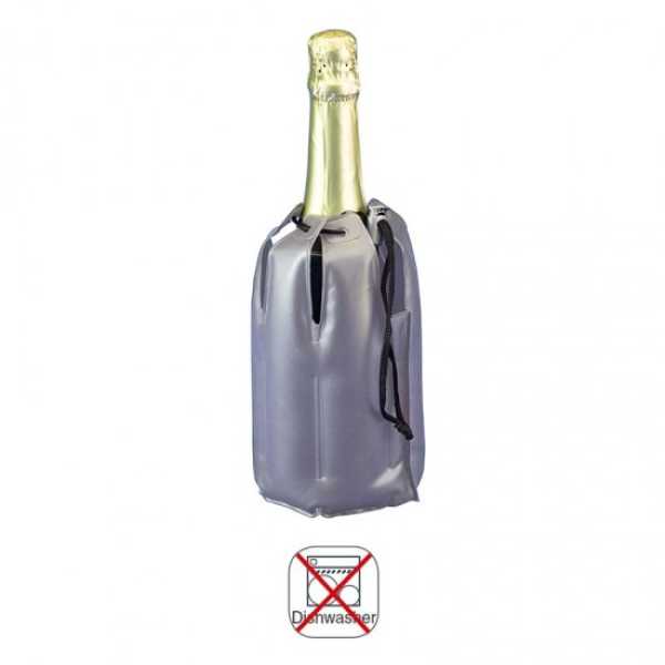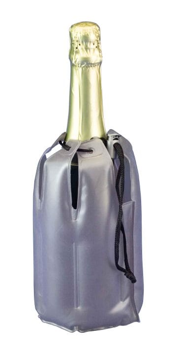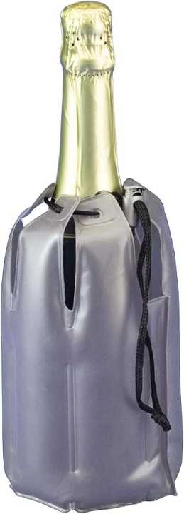 Luva de gel com laço de fechamento para arrefecer uma garrafa de vinho, espumante ou similares. Adaptável à maioria de garrafas de 0,7 e 1 litro.
