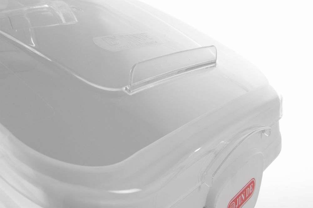 Tampa transparente em policarbonato para uma fácil identificação do tipo de produto e quantidade.