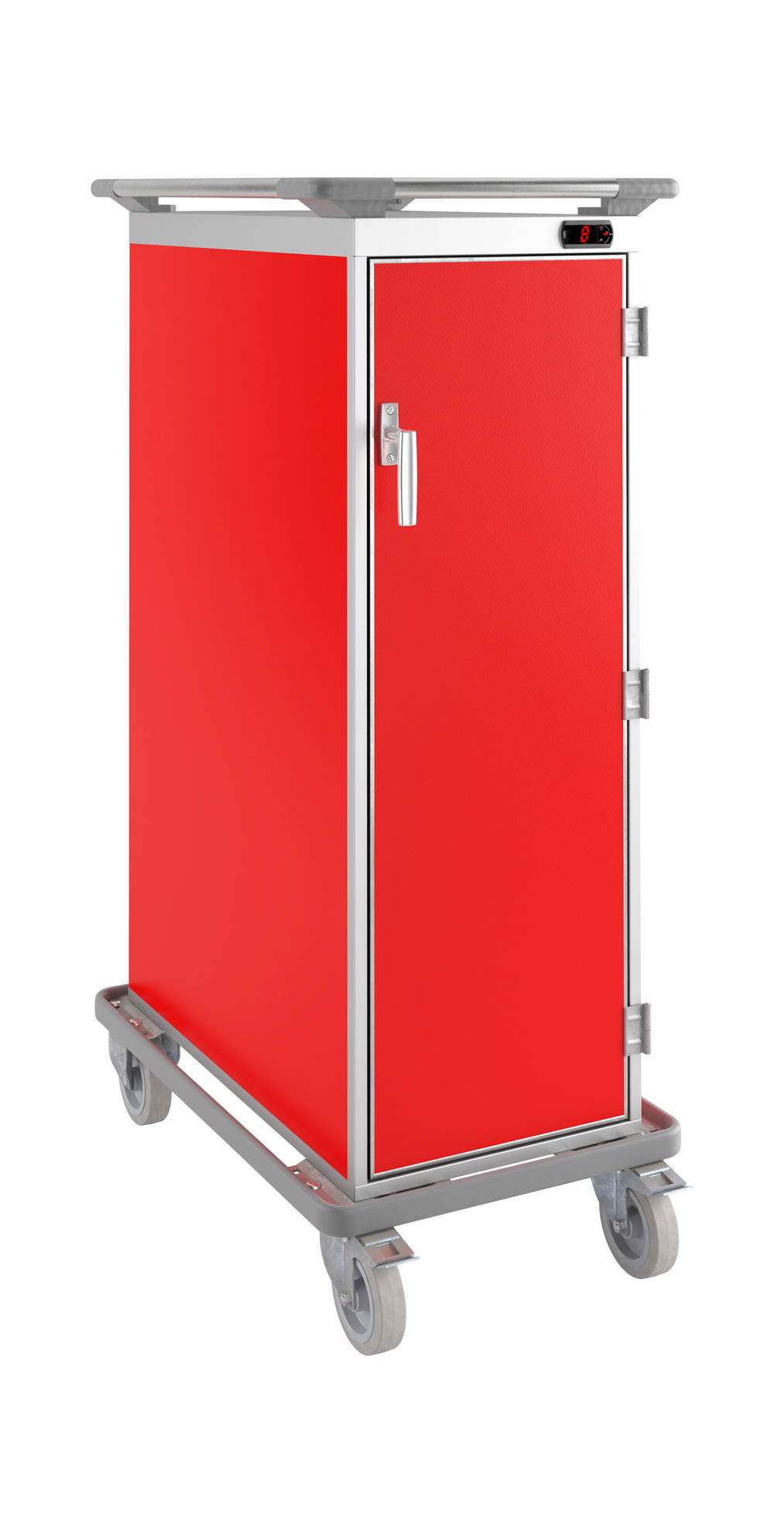 Carro com revestimento exterior em ABS plastificado, interior em aço inox; Isolamento em poliuretano injectado; Com quatro rodas de borracha:duas com travões e duas fixas; Armação superior em aço inox com cantos em PVC;Sistema de aquecimento por conveccão