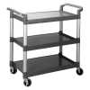 Este carro de serviço com 2 bandejas removíveis é fabricado em aço inoxidável de alta qualidade que oferece uma garantia máxima em relação à resistência, durabilidade e higiene, e é especialmente útil para uso profissional em serviços de cozinha, hotelaria, restauração, cantinas, buffets e grandes celebrações e eventos.
