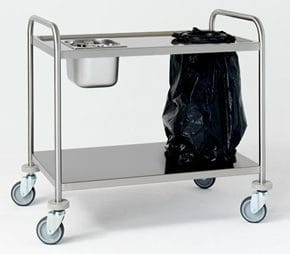 Especialmente projetado para suportar operações de limpeza de pratos e talheres e coleta de resíduos após um serviço de refeição.