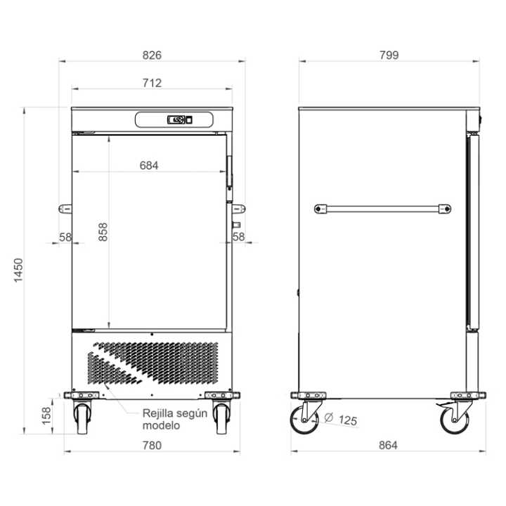 Equipado com prateleiras de barras revestidas de plástico GN 2/1 (dependendo do modelo):
