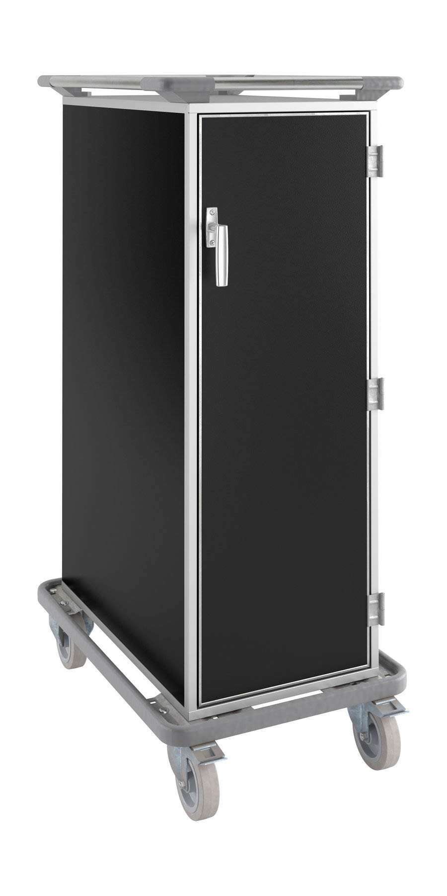 Carro neutro com revestimento exterior em ABS plastificado; interior em aço inox; Isolamento em poliuretano injetado; Com quatro rodas de borracha: duas com travões e duas fixas.