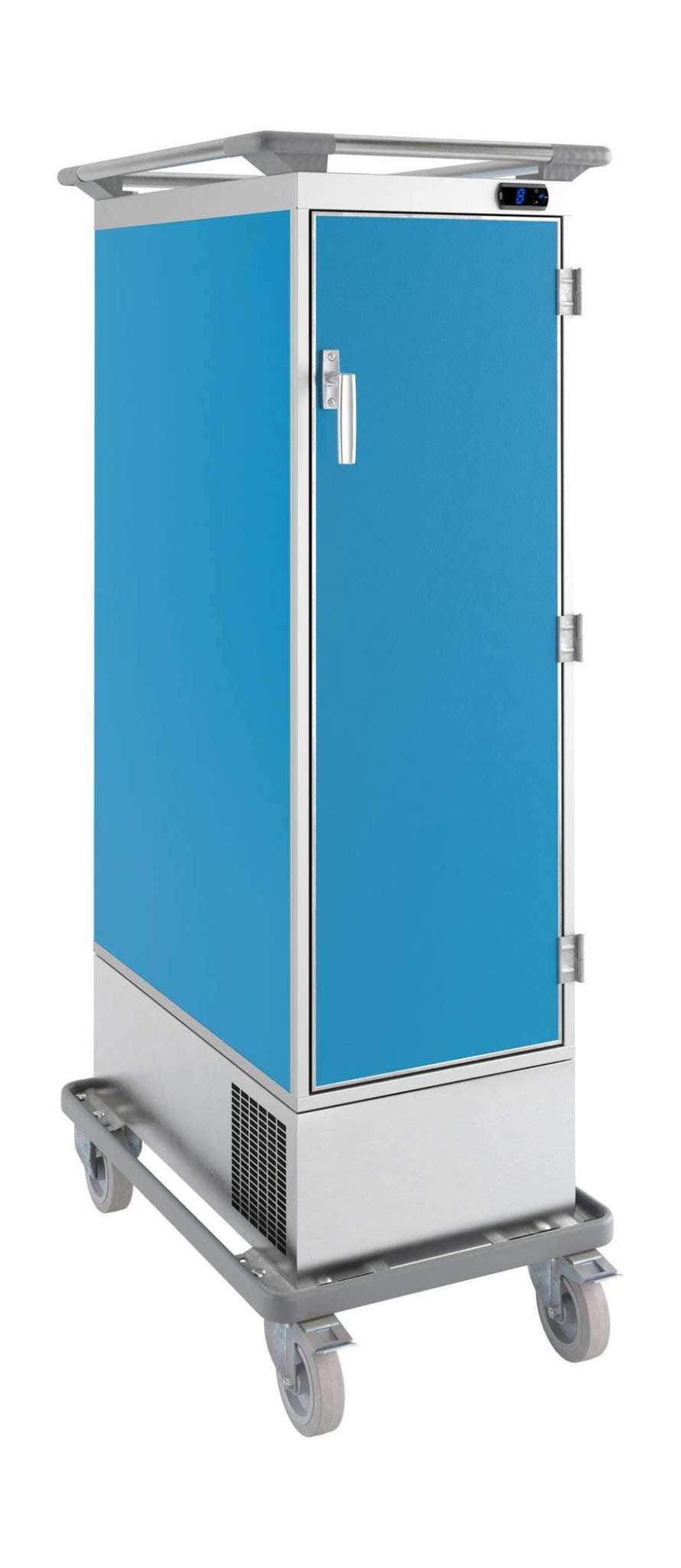 Carro com revestimento exterior em ABS plastificado, interior em aço inox; Isolamento em poliuretano injectado; Com quadro rodas de borracha:duas com travões e duas fixas; Armação superior em aço inox com cantos em PVC; Sistema de arrefecimento ventilado.