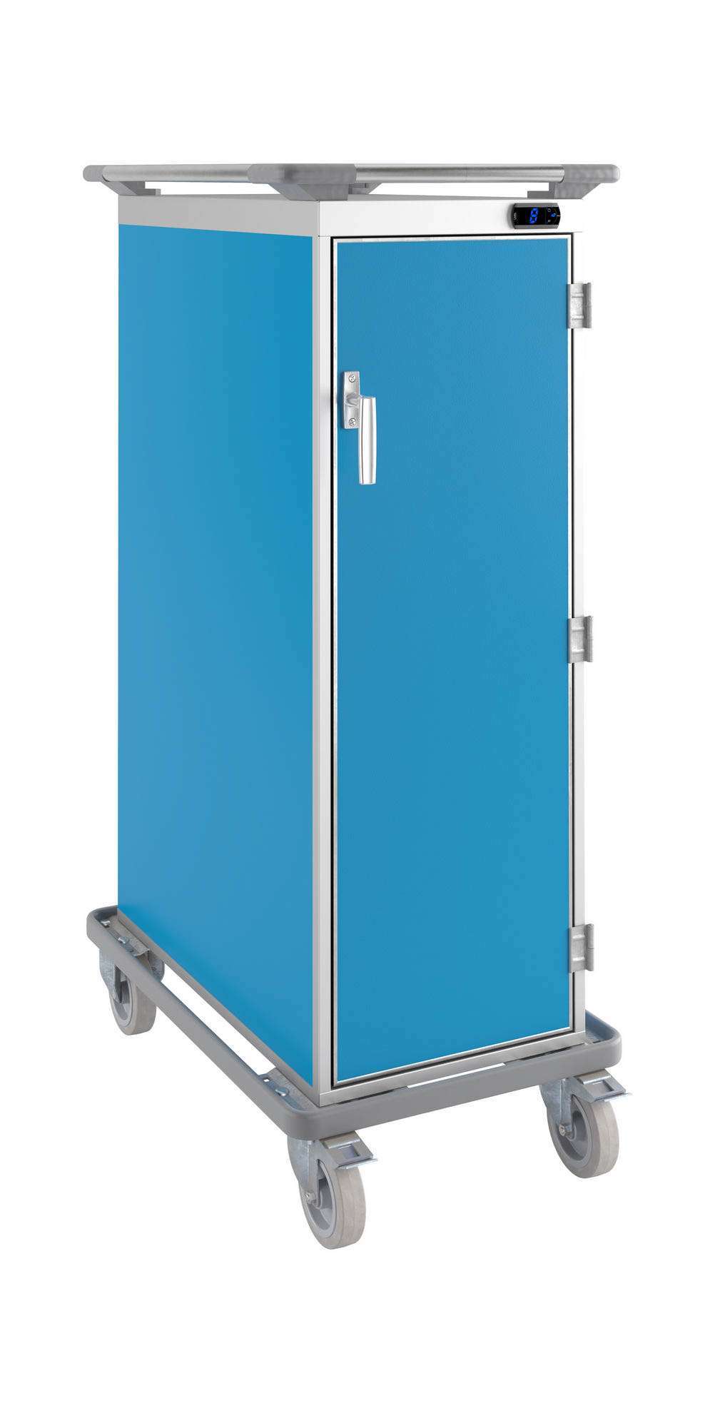 Carro com revestimento exterior em ABS plastificado; interior em aço inox; Isolamento em poliuretano injectado; Com quatro rodas de borracha:duas com travões e duas fixas; Armação superior em aço inox com cantos em PVC; Sistema de arrefecimento rápido.