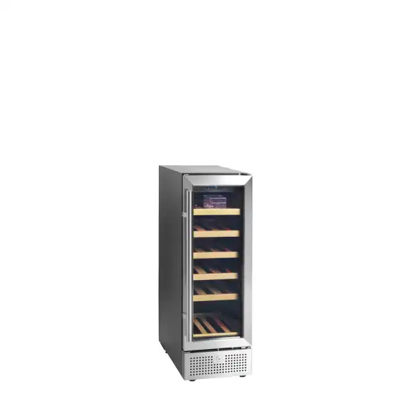 A gama TFW-F de refrigeradores de vinho em aço inoxidável oferece uma solução moderna para expor e armazenar garrafas de vinho. Tem um design elegante com uma frente em aço inoxidável, interior preto, iluminação LED suave e prateleiras de madeira deslizantes. O moderno sistema de refrigeração é altamente eficiente e reduz o ruído, o calor e o consumo de energia do refrigerador.