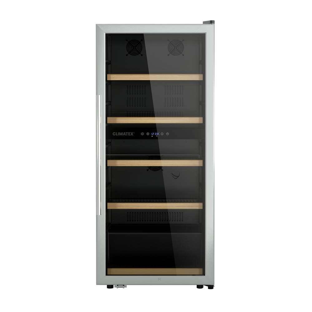 Cave de vinho com 2 zonas de temperatura. Design elegante com porta de aço inoxidável. Ajuste de temperatura de 5°C a 18°C. Sistema termodinâmico. Porta de vidro com tratamento anti-UV. Exibição eletrônica de temperatura. Controle digital. Iluminação LED com interruptor. Tecnologia silenciosa. Sistema antivibração. Pés ajustáveis. 5 prateleiras de metal com acabamento em madeira