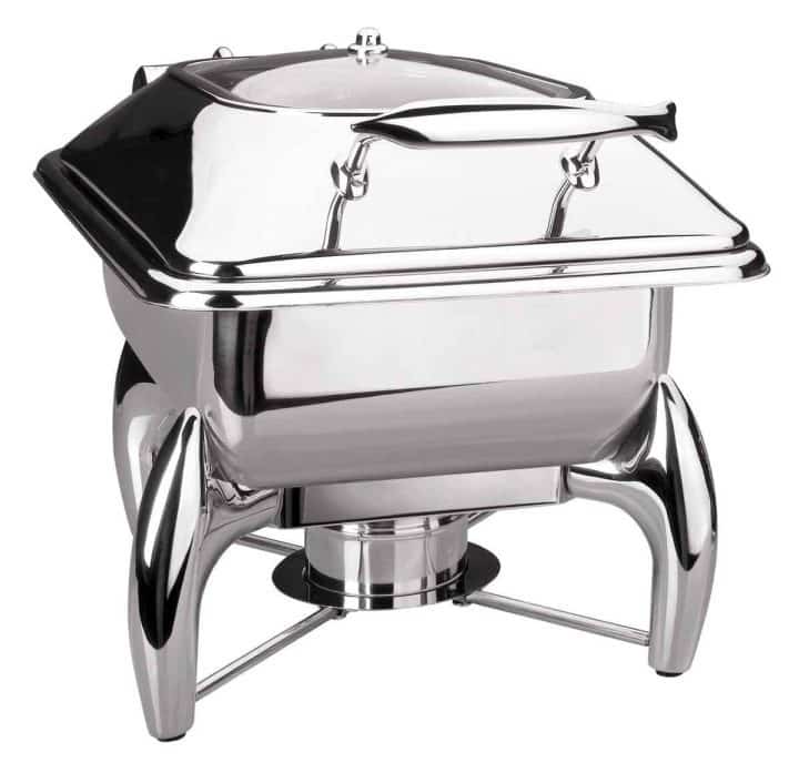 A gama de LUXE Chafing Dish é projetado especialmente para os profissionais da cozinha, tanto na hotelaria, restauração, buffets e grandes celebrações e eventos, onde manter a temperatura dos alimentos que vão servir os clientes é de suma importância. A gama LUXE é fabricada em aço inoxidável 18/10 de alta qualidade que oferece uma garantia máxima em relação à resistência, durabilidade e higiene.