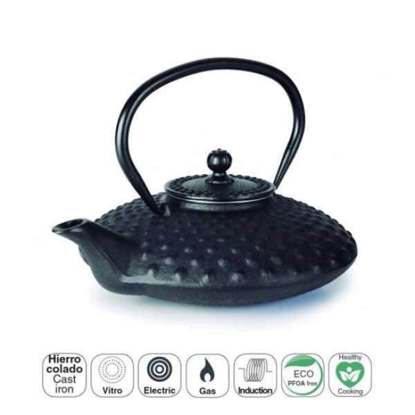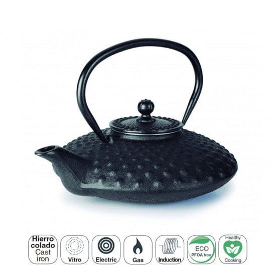 Chaleira preta artesanal construída em ferro fundido totalmente compatível com fogões a gás, placas de indução, placas ou elétricas.