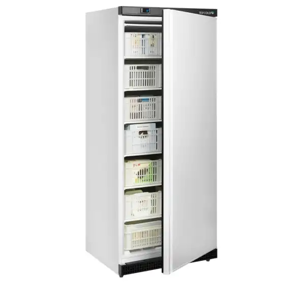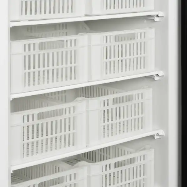 A gama UF de congeladores de armazenagem oferece alta qualidade a um preço competitivo. Está disponível em vários tamanhos, todos num design simples com um puxador de porta a todo o comprimento. Esta arca congeladora standard inclui prateleiras de congelação fixas, que ajudam a garantir uma temperatura uniforme em toda a arca. A temperatura é definida no ecrã do termóstato digital fácil de utilizar.