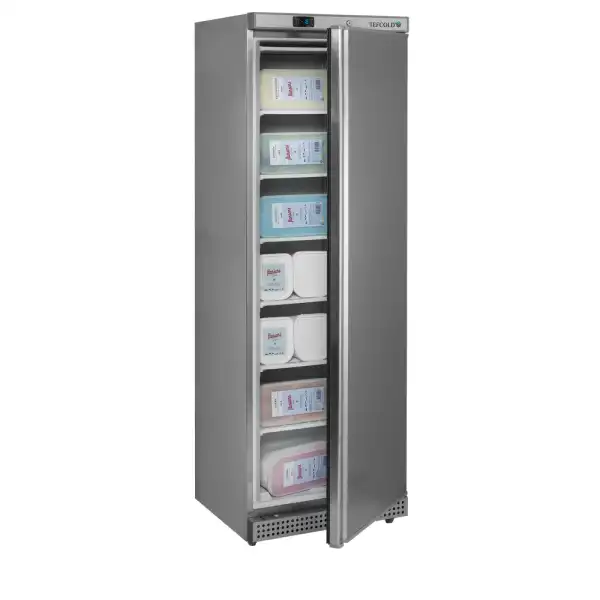 A gama de congeladores de armazenagem UF-S é a versão em aço inoxidável dos nossos armários UF. Oferecem alta qualidade e fiabilidade a um preço competitivo. Está disponível em vários tamanhos, todos com um design simples com um puxador de porta a todo o comprimento. Esta arca congeladora standard inclui prateleiras de congelação fixas, que ajudam a garantir uma temperatura uniforme em toda a arca. A temperatura é definida no ecrã do termóstato digital fácil de utilizar.