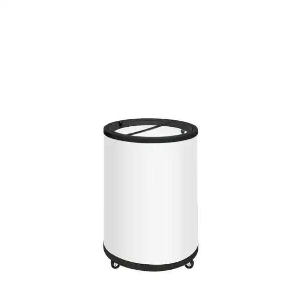 A gama CF de congeladores redondos é perfeita para estimular as compras por impulso. O congelador redondo é compacto e pode ser facilmente deslocado com os seus robustos rodízios giratórios. Possui refrigeração estática e inclui um sistema de divisórias para facilitar a visualização dos produtos no interior. Liberte todo o seu potencial personalizando-o com a sua marca para atrair a atenção dos seus clientes. Também disponível como opção de frigorífico.