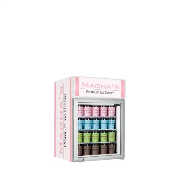 A gama UF-GCP de congeladores de exposição de balcão inclui uma cobertura iluminada por LED para ajudar a atrair a atenção dos clientes. É fácil de personalizar de acordo com as suas necessidades, com prateleiras e pés ajustáveis. Coloque o congelador no balcão para estimular as vendas por impulso.