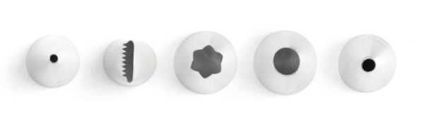O conjunto inclui 5 tubos de cobertura para: – Rechear – Macarrones – Decorar – Tranças de cesto – Escrever Extra preciso graças às extremidades afiadas