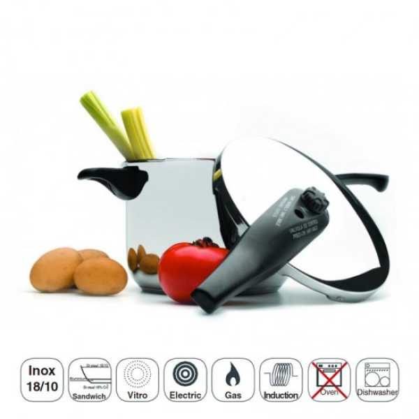 Seu fundo termodifusor sanduíche composto de duas camadas de aço inoxidável e de alumínio intercalada, favorece uma rápida distribuição de calor de forma uniforme, o que se traduz em maior economia de energia.