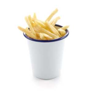 Aço esmaltado em branco com um elegante rebordo em azul.