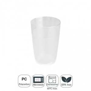 Copo transparente de 7×10 cm de largura e 250 ml de capacidade fabricado em policarbonato. Ideal para uso em hospitais, residências, escolas, etc.