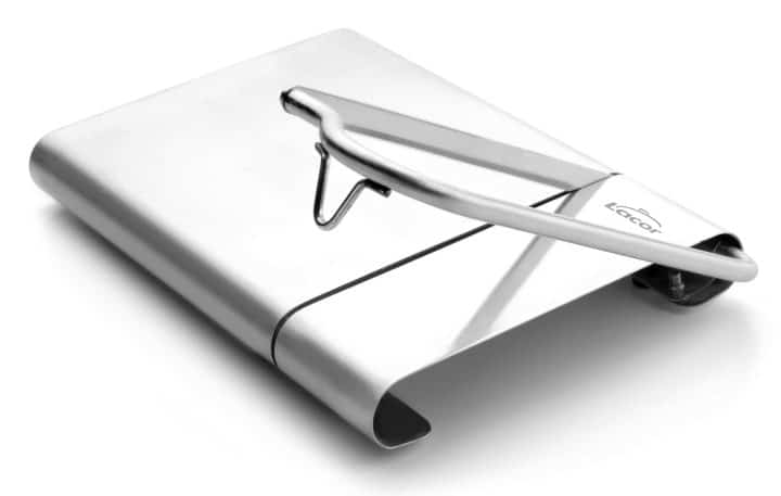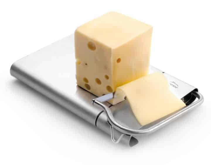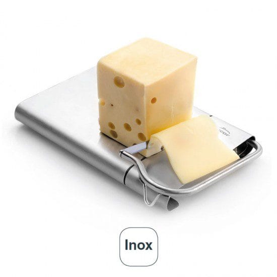 Guilhotina cortaquesos de 27,5x21x3 cm fabricada em aço inoxidável de grande qualidade e resistência à corrosão.