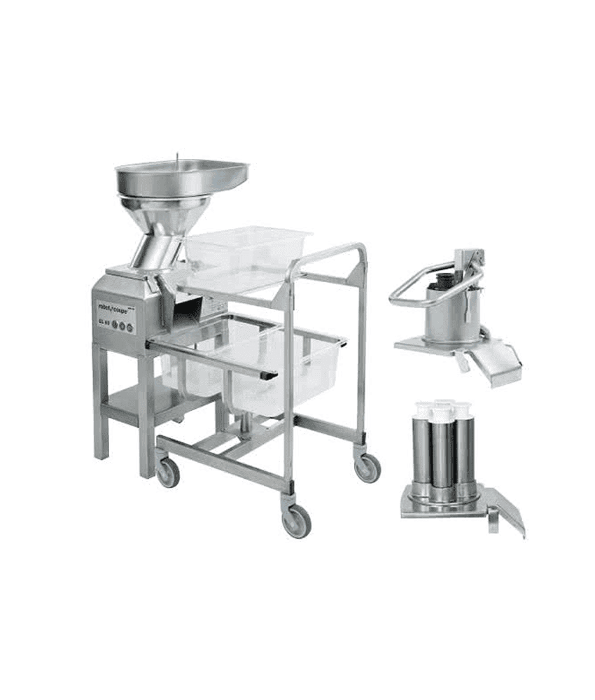 Cortadora de legumes com 2 bocas, concebida para cortar grande volume de legumes num instante.