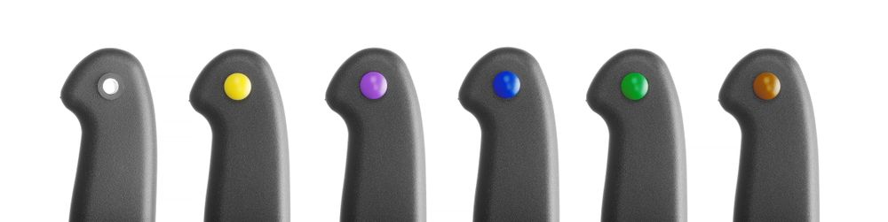 Lâmina de aço inoxidável, cabo em polipropileno.